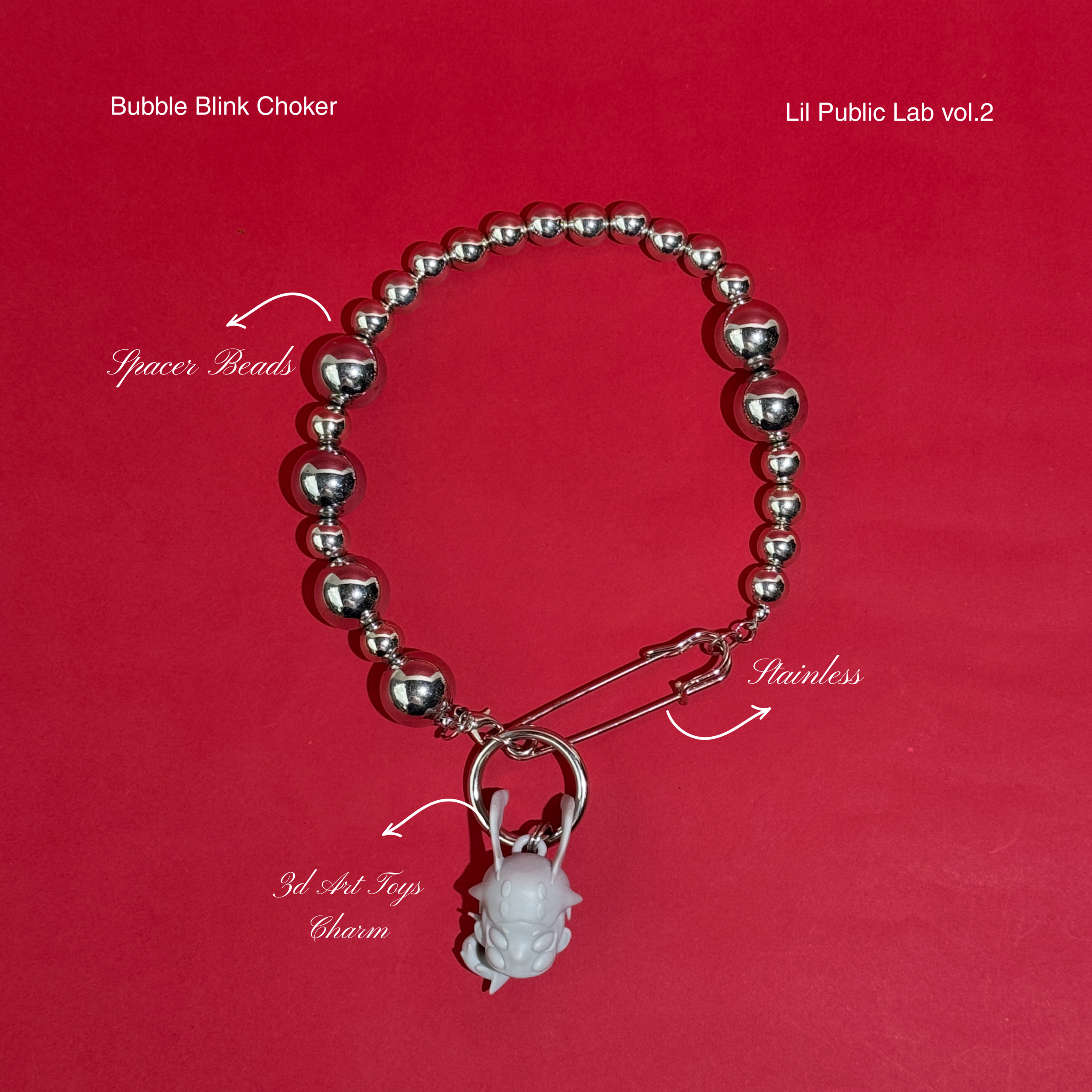 Accessories “Vol 2” is made from mixed materials with 3D-printed monster detail, featuring stainless silver & grey color material and a grey 3D design.