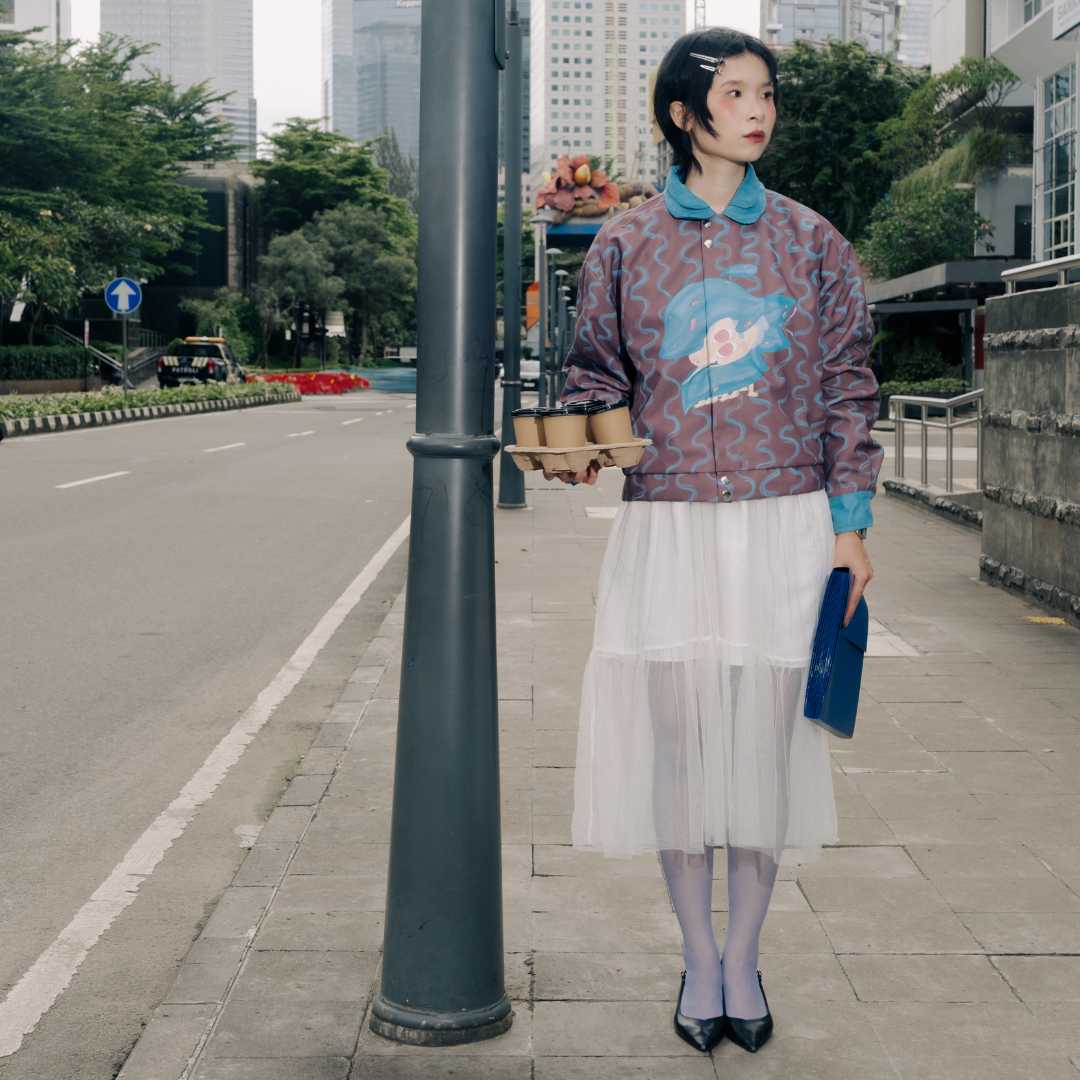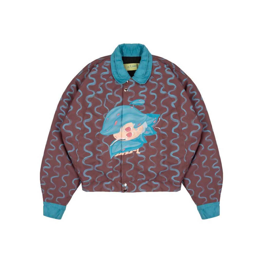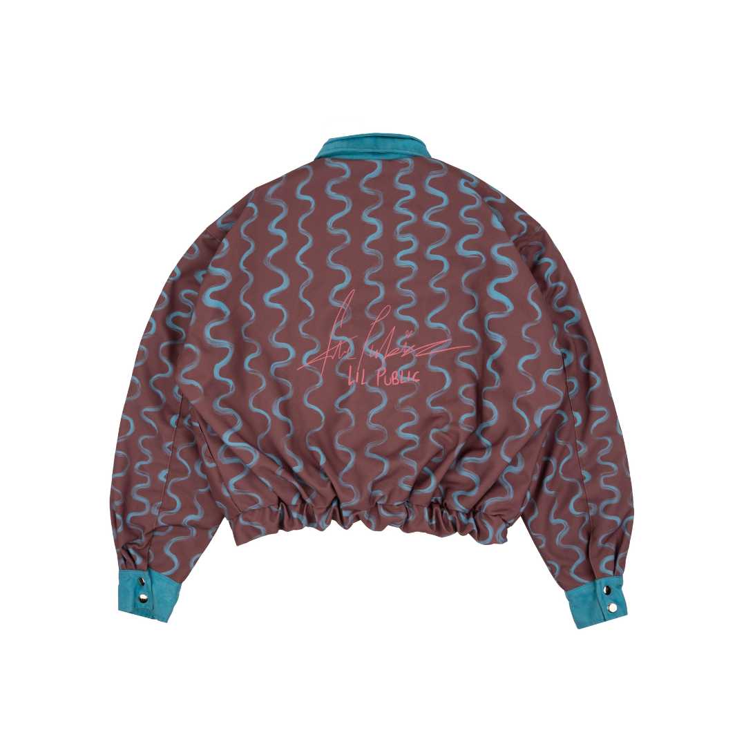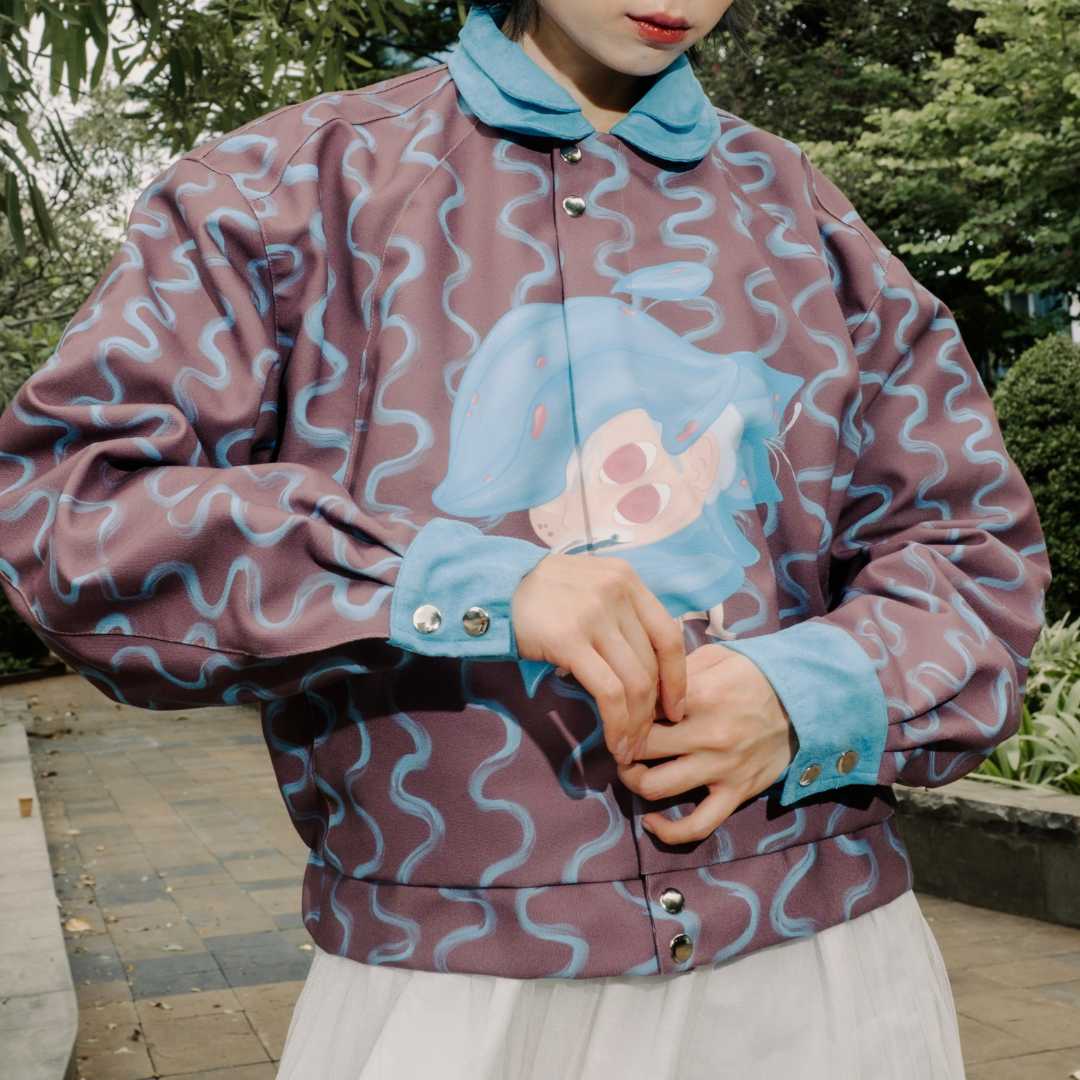 Made from Canvas PE Sublimation, with Printed artwork with 2-layer suede collar, hidden double zipper, furing despo 2oz, and hidden pocket inside and beside, and Oversized Boxy cut.