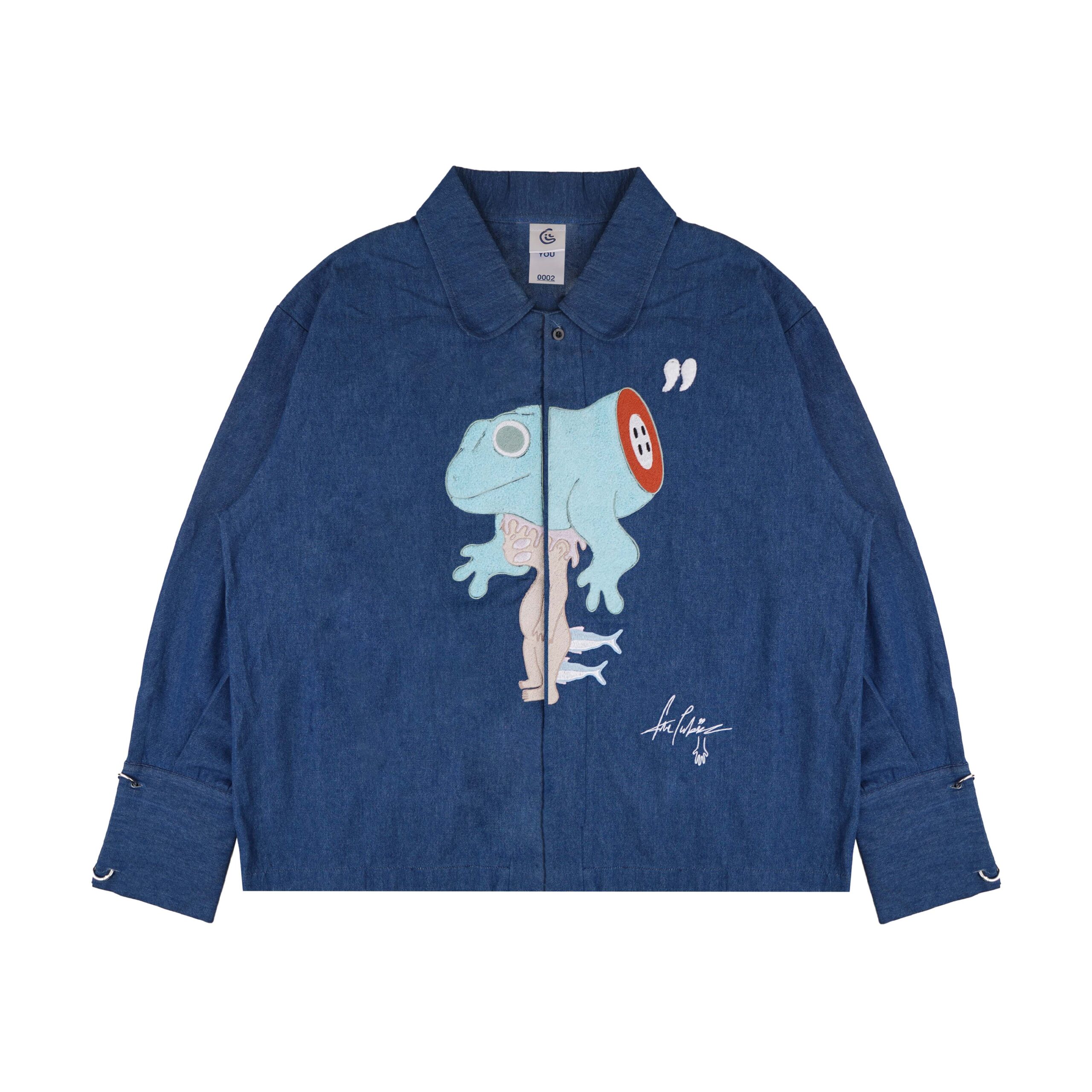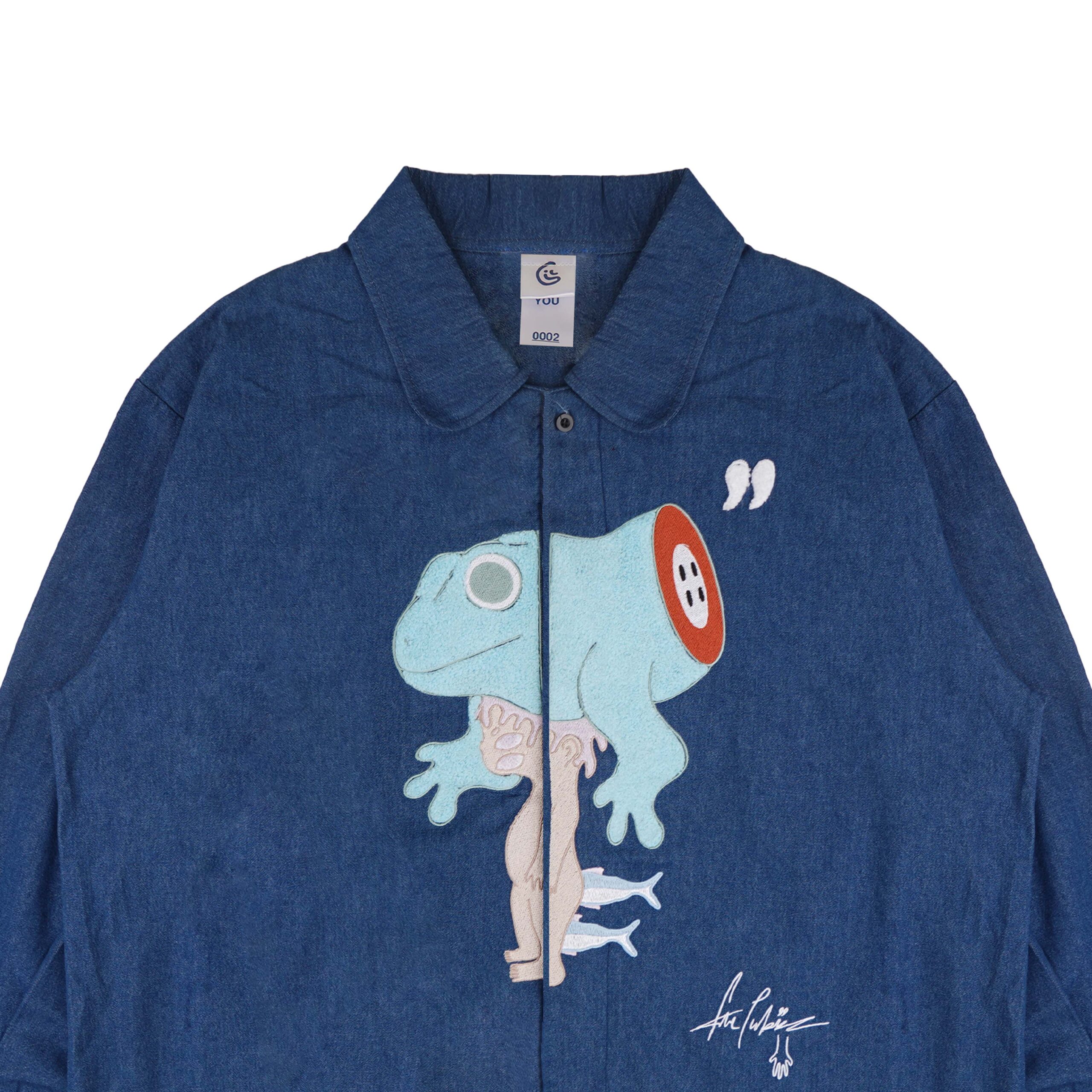 Made from Cotton Chambray with towel embroidery, ring in the hand shirt detail, and oversized boxy cutting.